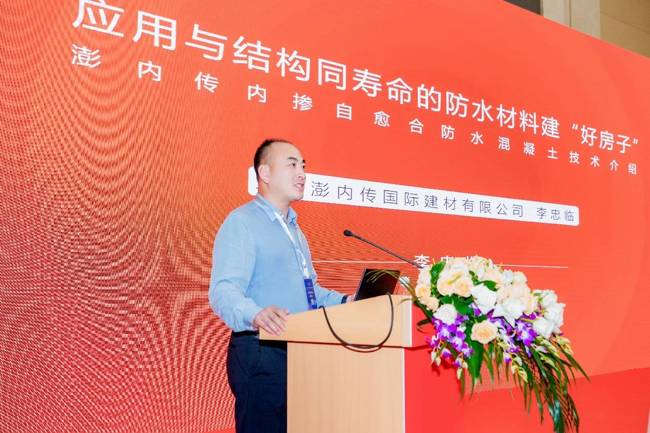 北京澎內傳國際建材有限公司市場總監李忠臨以《與結構同壽命防水材料助力建造“好房子”》為題作了專題報告,首先總結分析了當前建筑物滲漏的主要原因,然后介紹了澎內傳防水系統的機理、性能與技術特點,可從根本上解決滲漏問題,最后與大家分享了澎內傳結晶自愈合防水混凝土在工程中的應用情況。